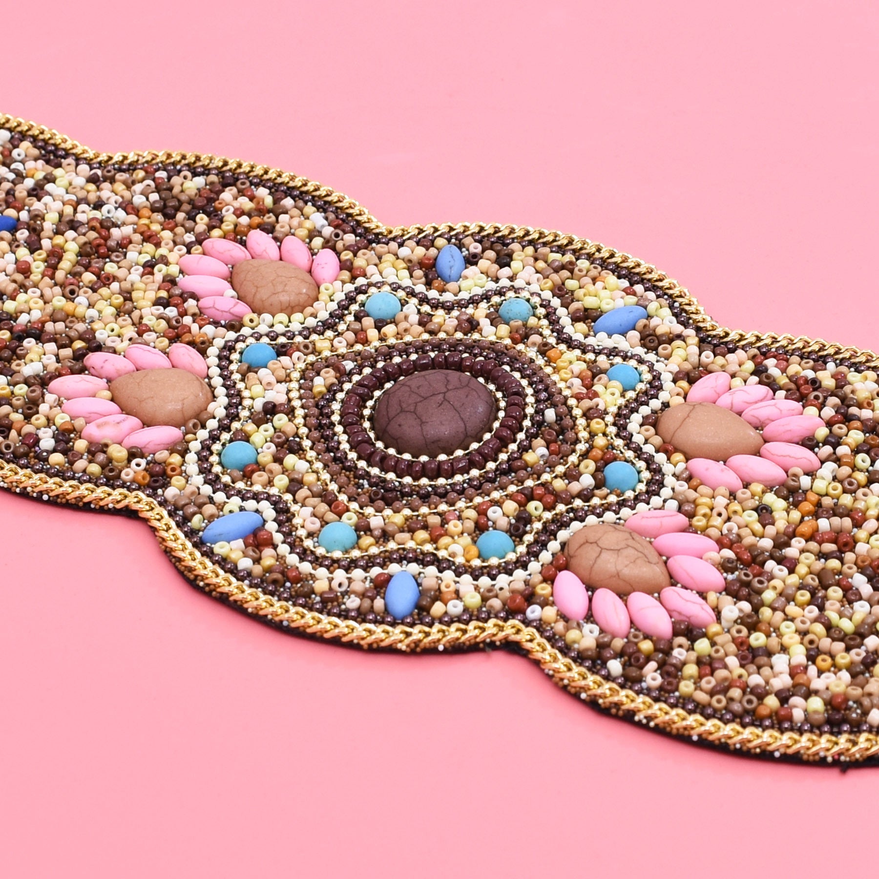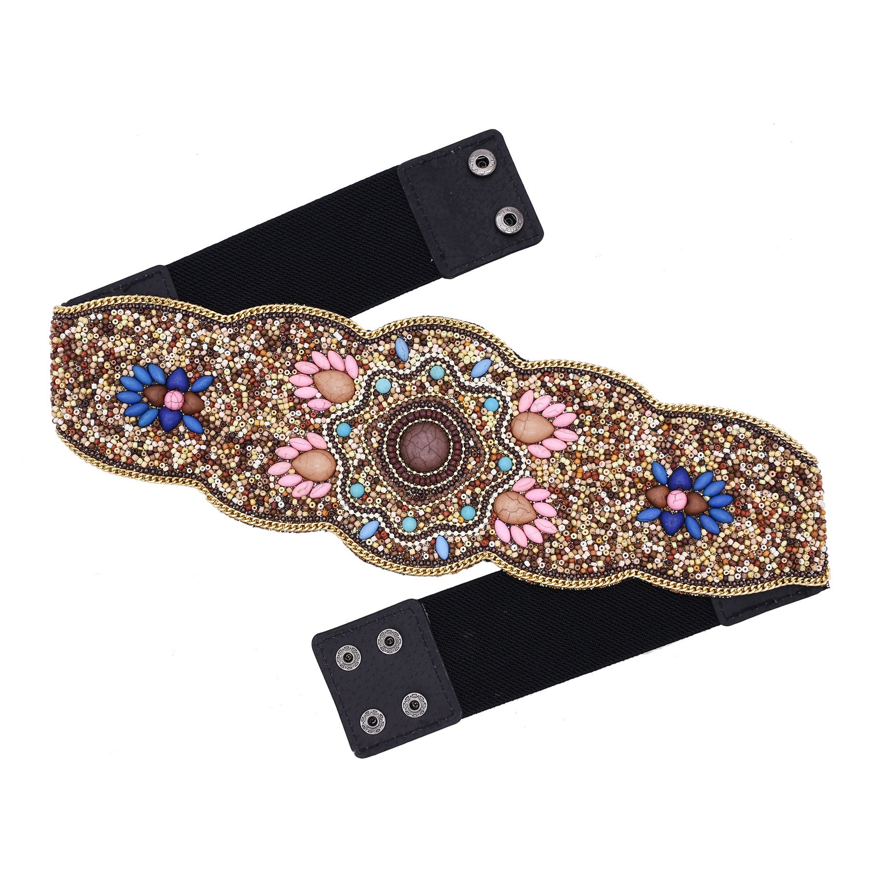 Beaded And Pressed Imitation Turquoise Elastic Waistband For Clothing Belt