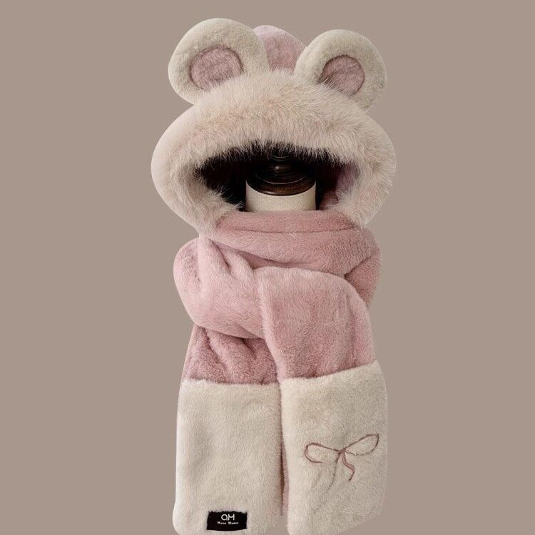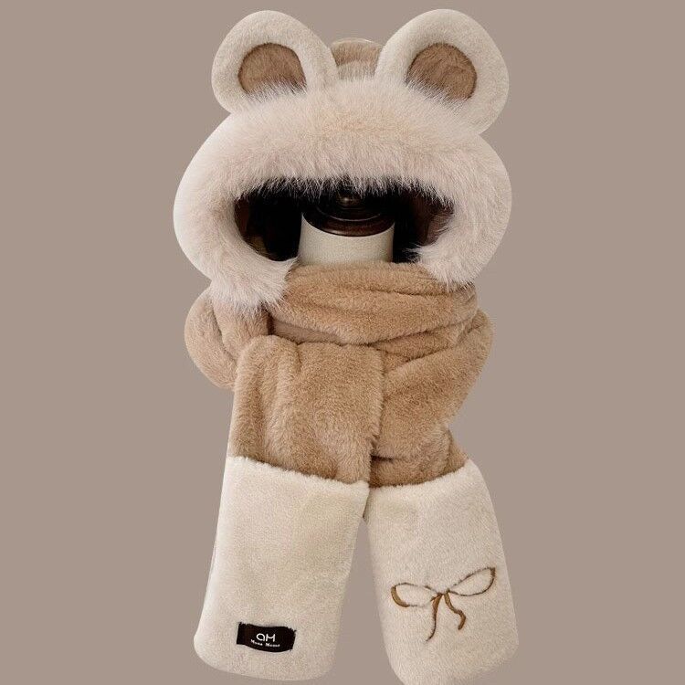 Bow-style Warm Three-piece Set Winter Cycling Windproof Scarf And Gloves Combo