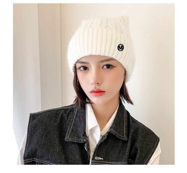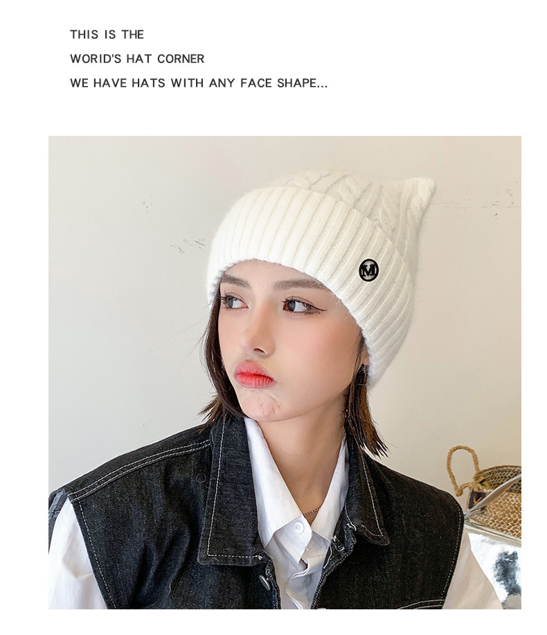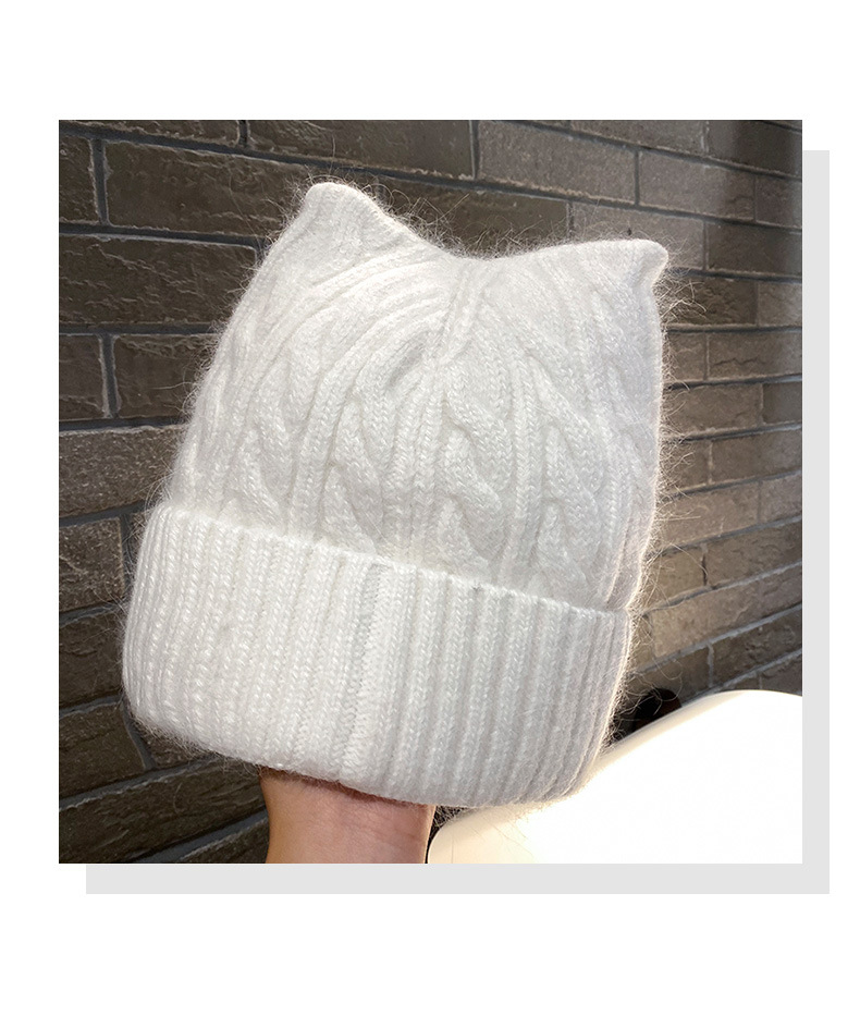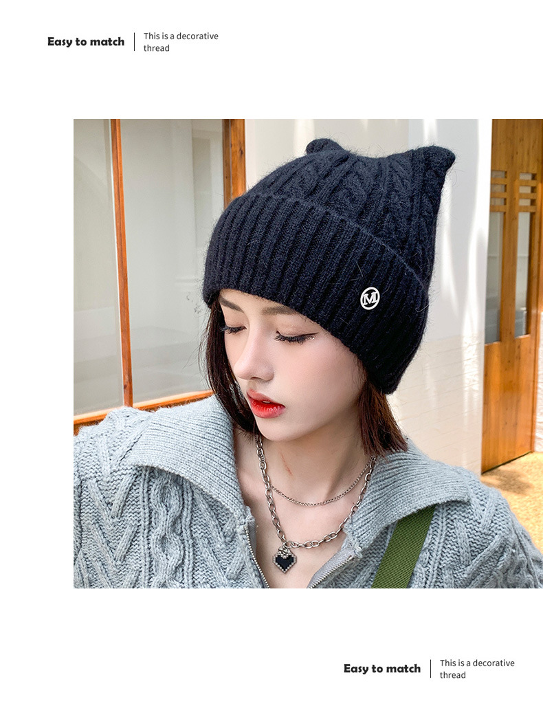 Cute Cat-ear Knitted Wool Warm Hat Versatile Face-slimming