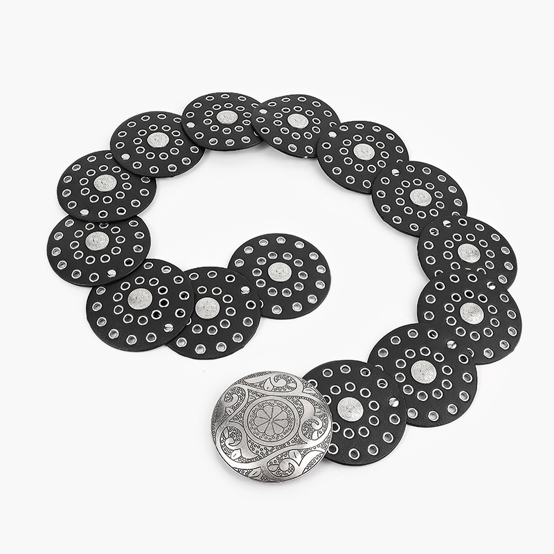 Disc Hook Leather Retro Rivet Alloy Belt Wide Belt