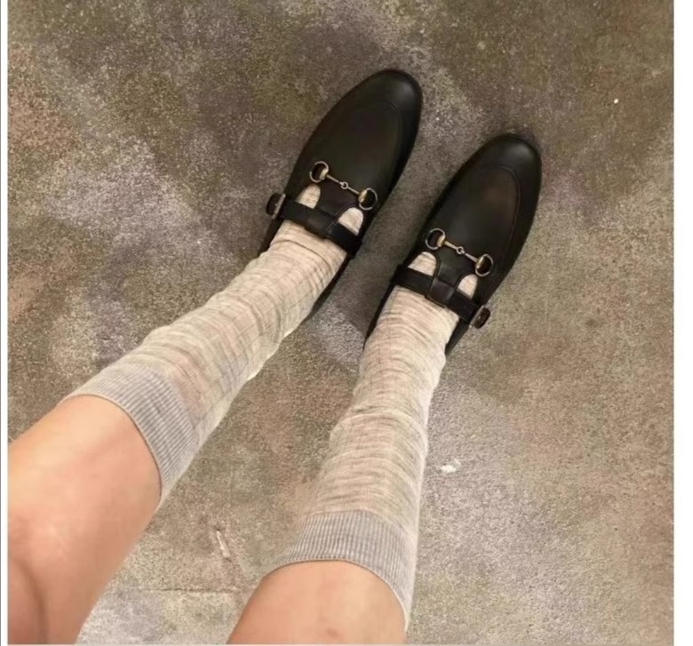 Fashion Show Thin High Socks Versatile See-through Calf Stack Socks Breathable Cotton