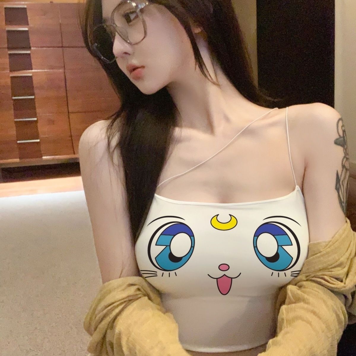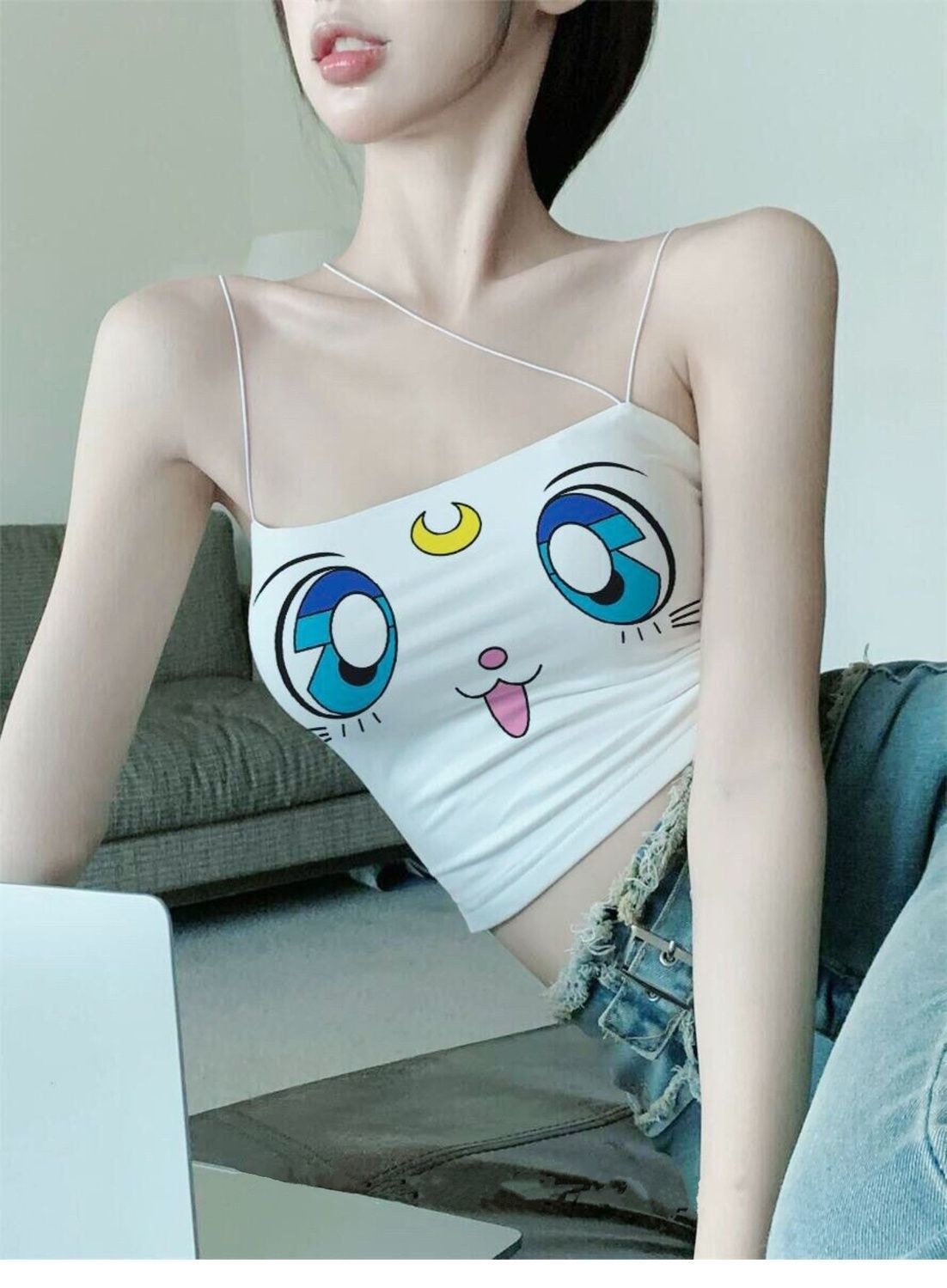 Female Creative Cartoon Printed Short Vest Base