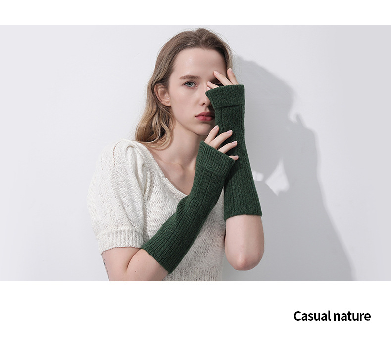 Knitted Fingerless Wool-blend Thermal Knit Gloves