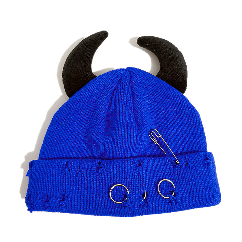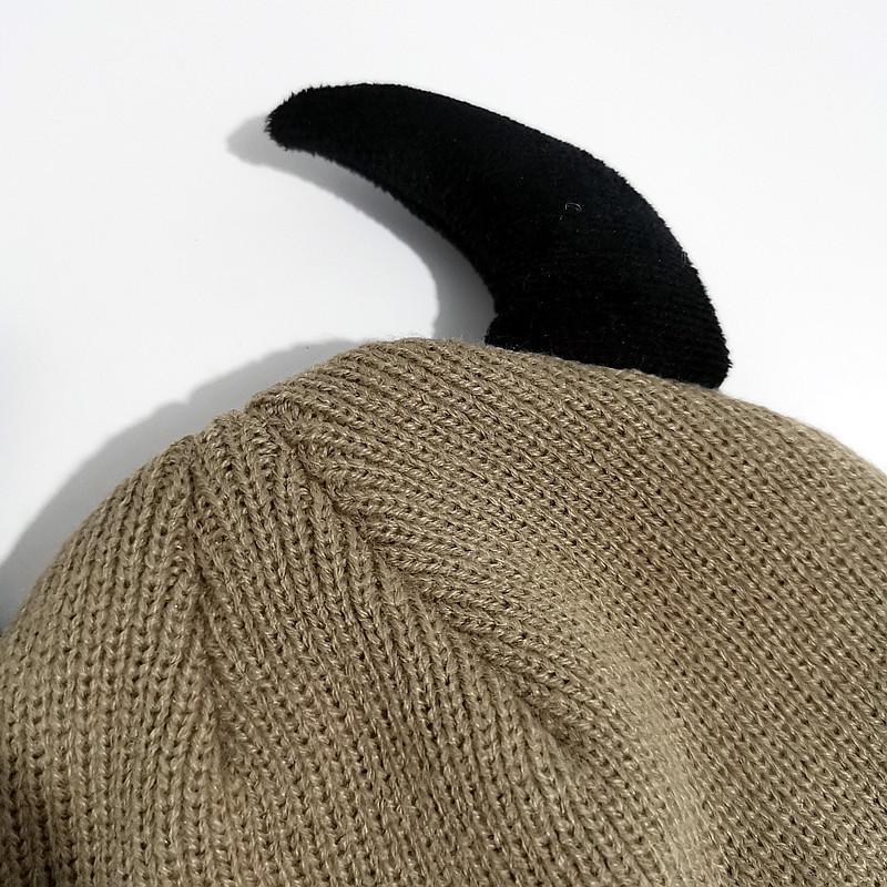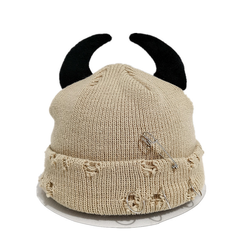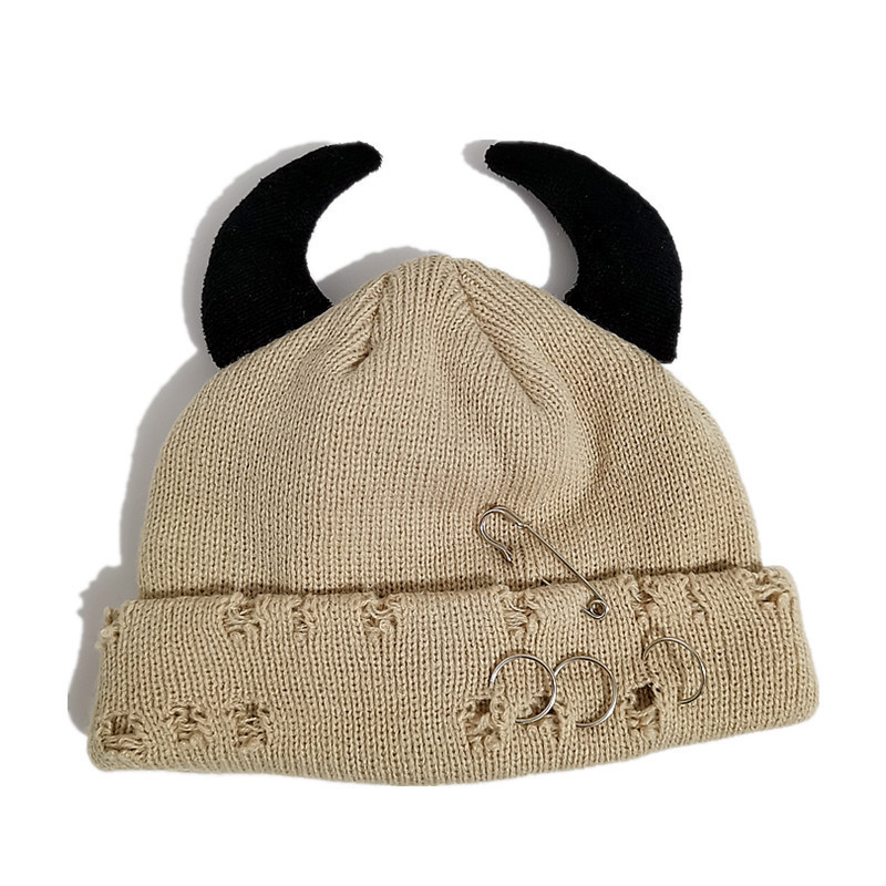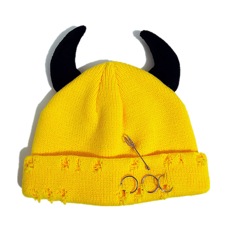 Hat Crown Styles: Devil Horn Knitted Hat—Beige, Devil Horn Knitted Hat—Black, Devil Horn Knitted Hat—Red, Devil Horn Knitted Hat—White, Devil Horn Knitted Hat—Khaki, Devil Horn Knitted Hat—Royal Blue, Devil Horn Knitted Hat—Yellow