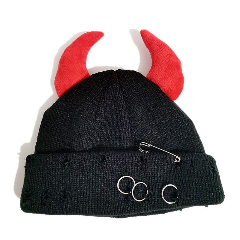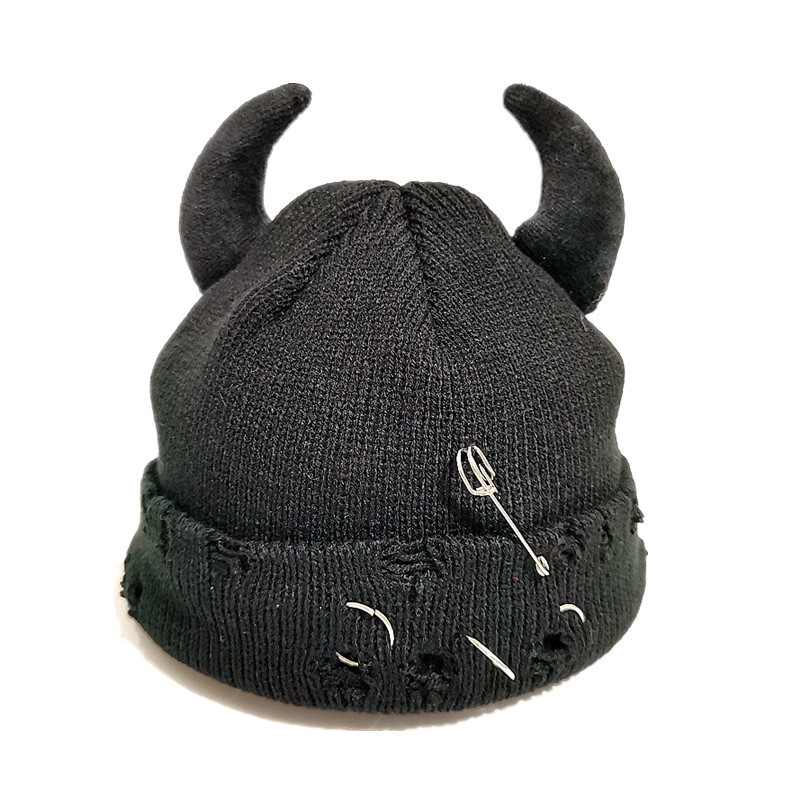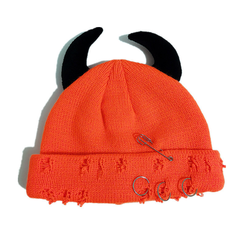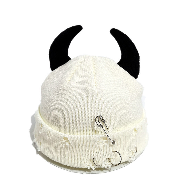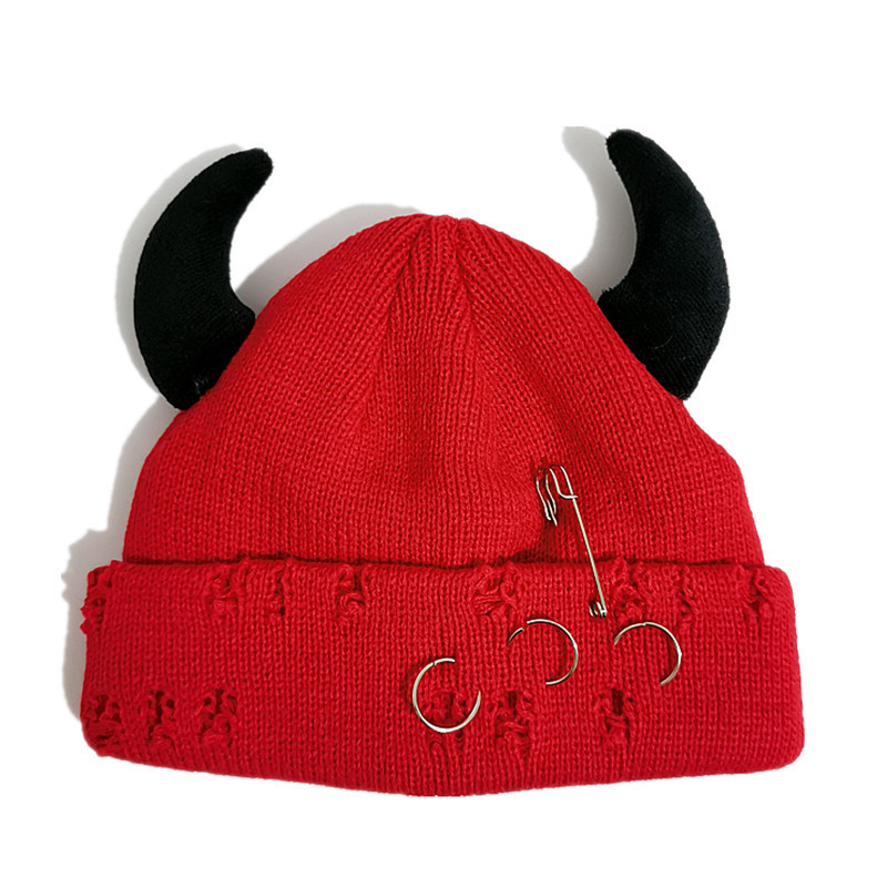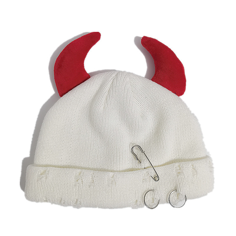 Hat Crown Styles: Devil Horn Knitted Hat—Beige, Devil Horn Knitted Hat—Black, Devil Horn Knitted Hat—Red, Devil Horn Knitted Hat—White, Devil Horn Knitted Hat—Khaki, Devil Horn Knitted Hat—Royal Blue, Devil Horn Knitted Hat—Yellow