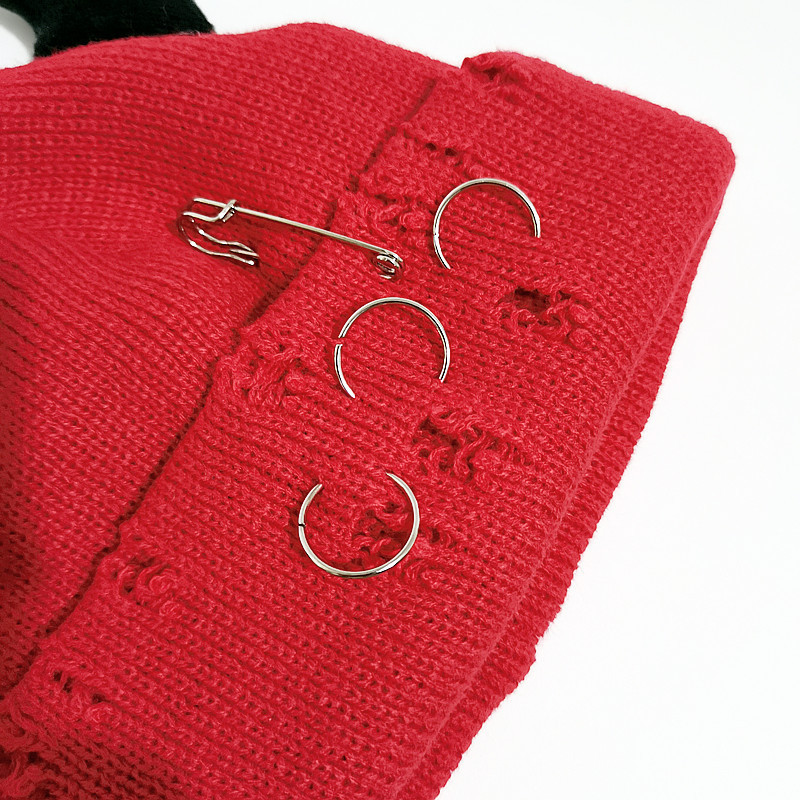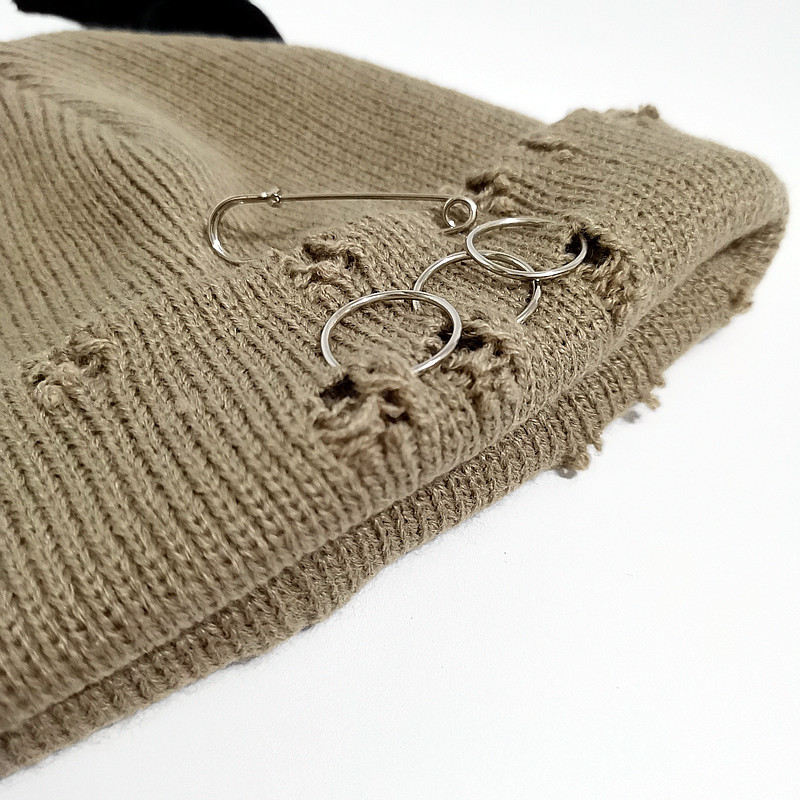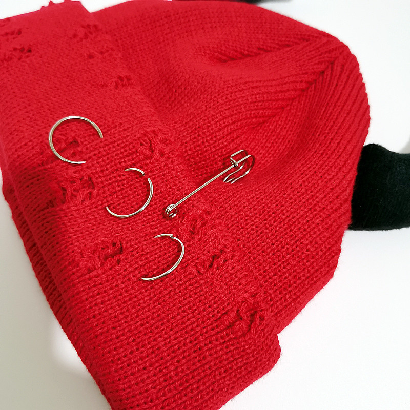 Knitted Wool Hat With Hole-decorated Gourd-shaped Devil-ear Pins