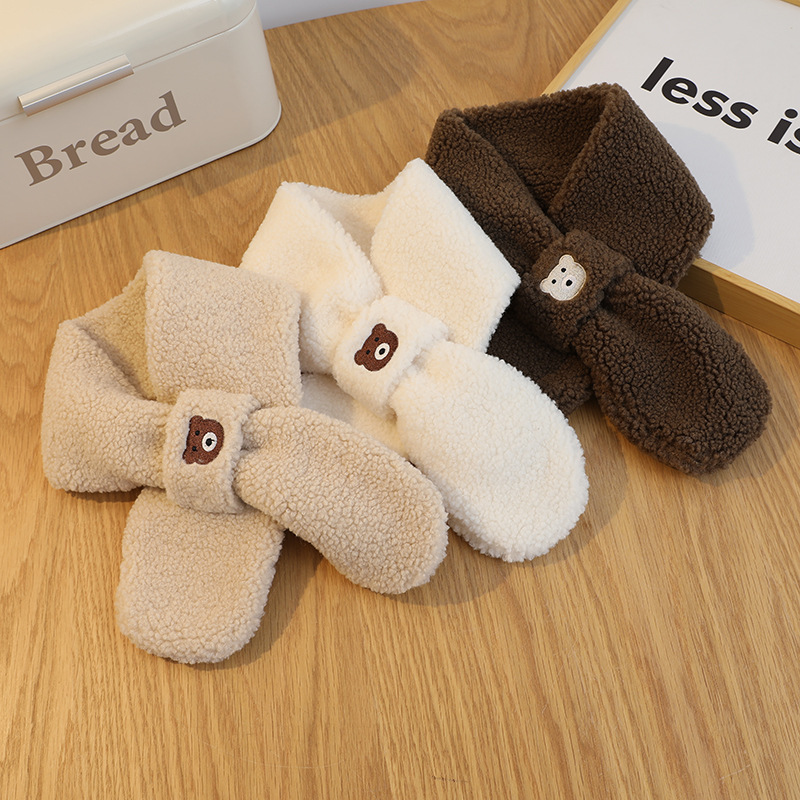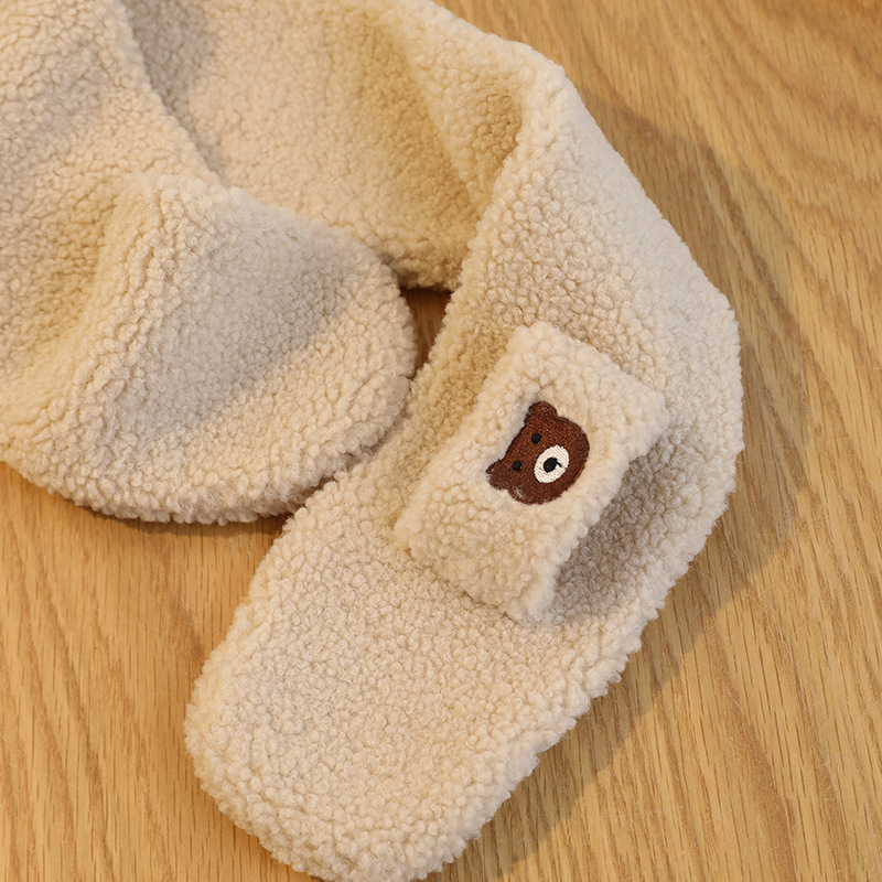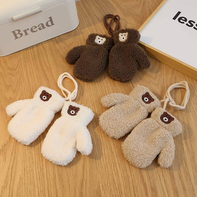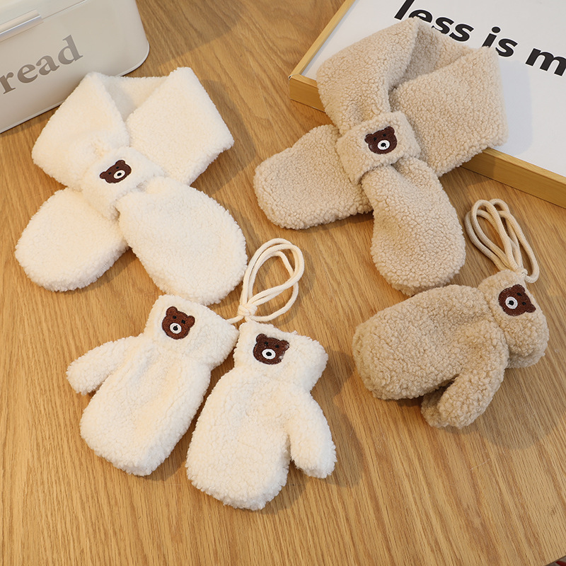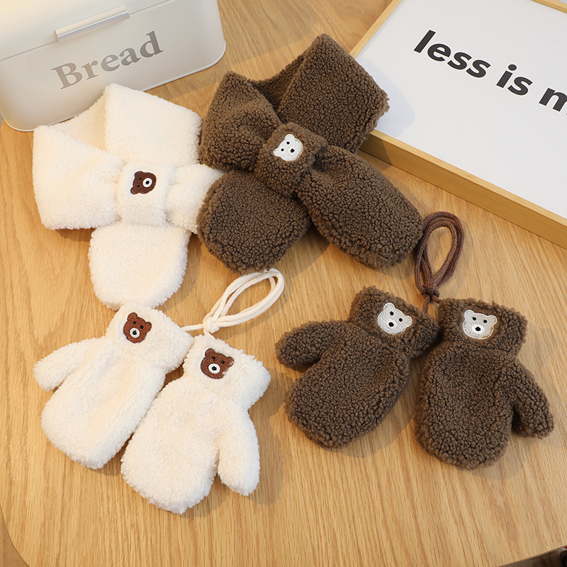 Korean Solid Color Bear Children's Gloves Set Autumn And Winter