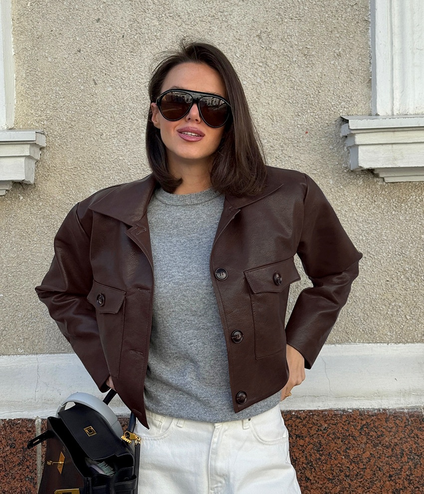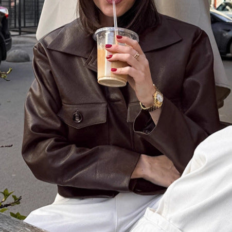 New Loose Slimming Locomotive Style Fashion Leather Coat