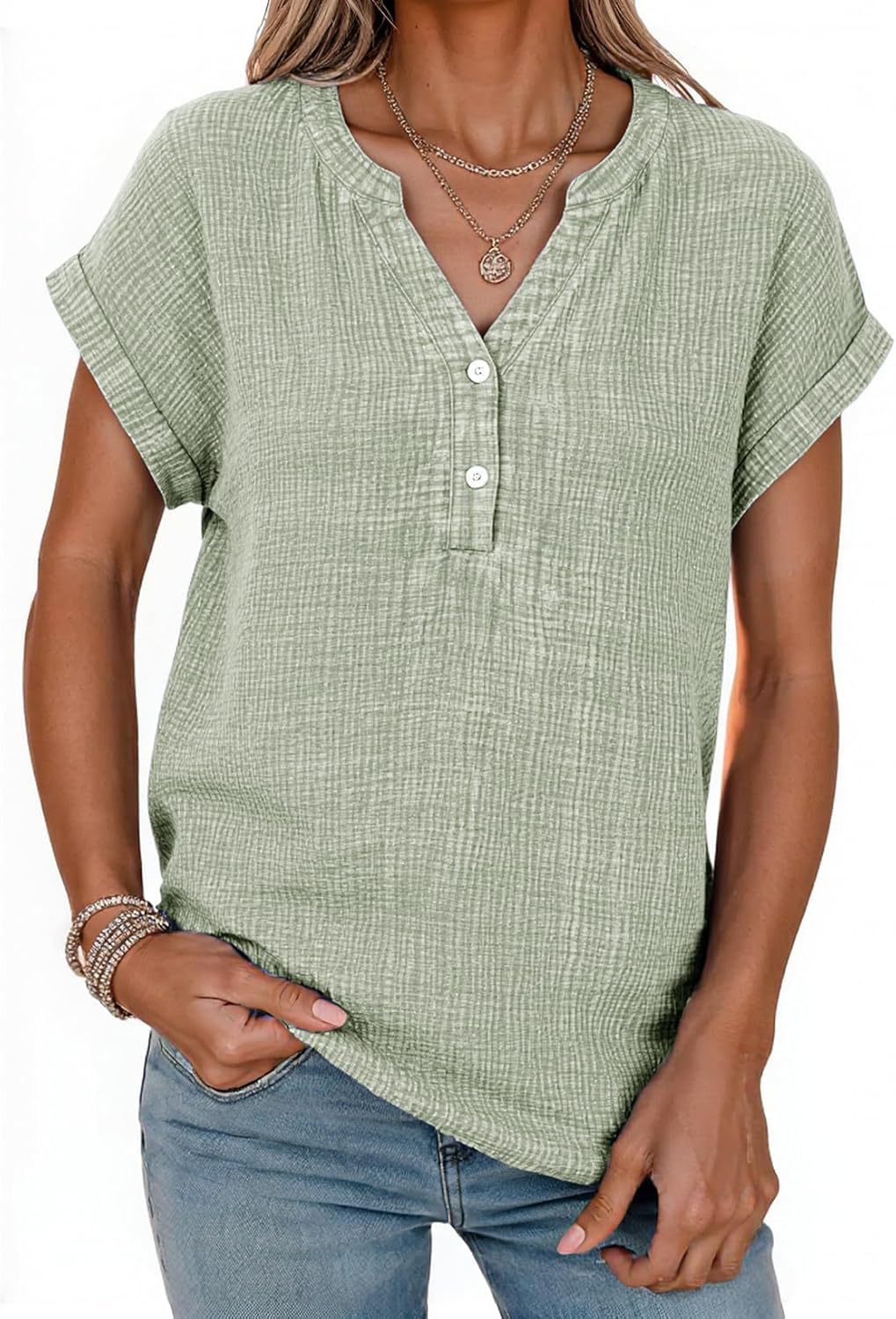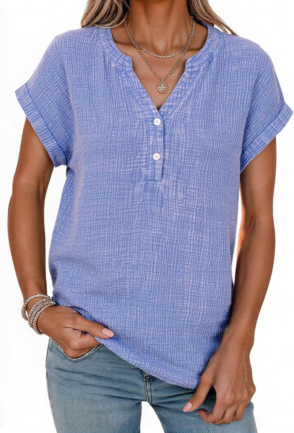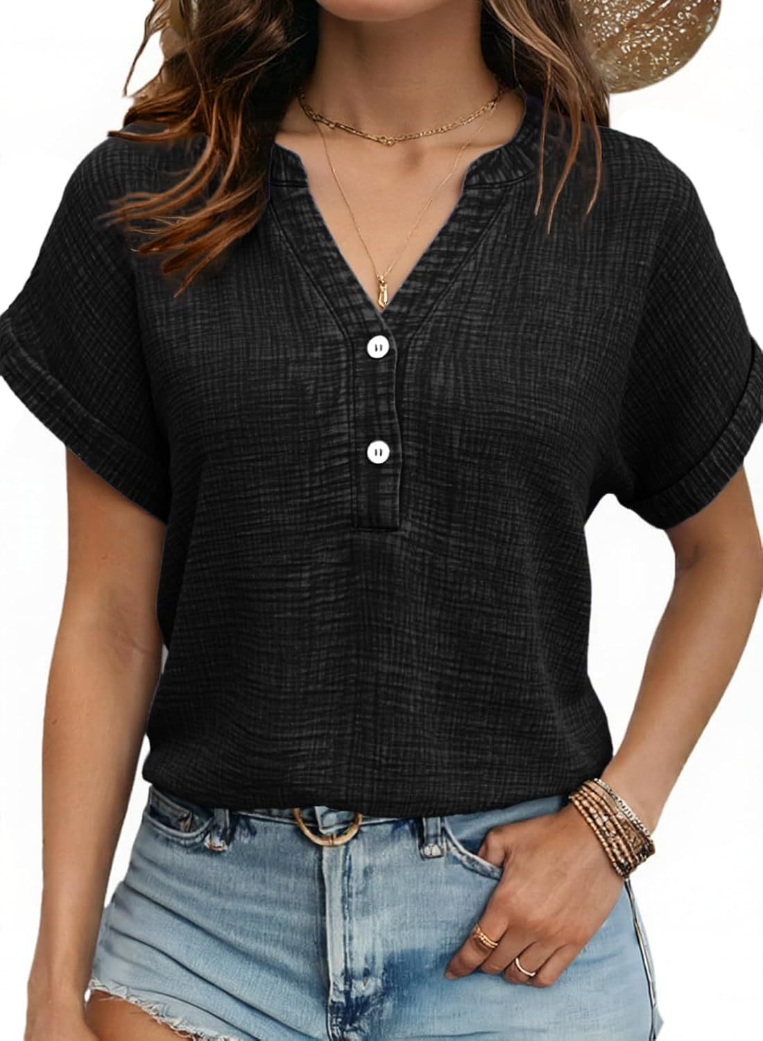 Women's Casual Button-up Short-sleeve Top