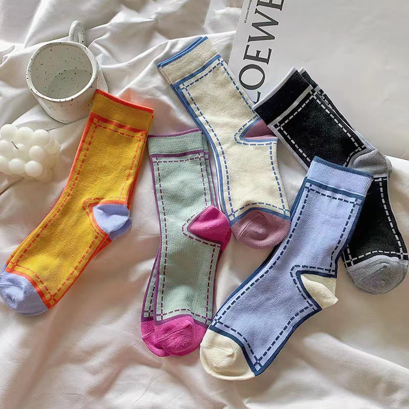 Women's Colorful Mid-calf Socks With Color-blocking Design