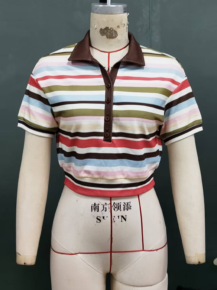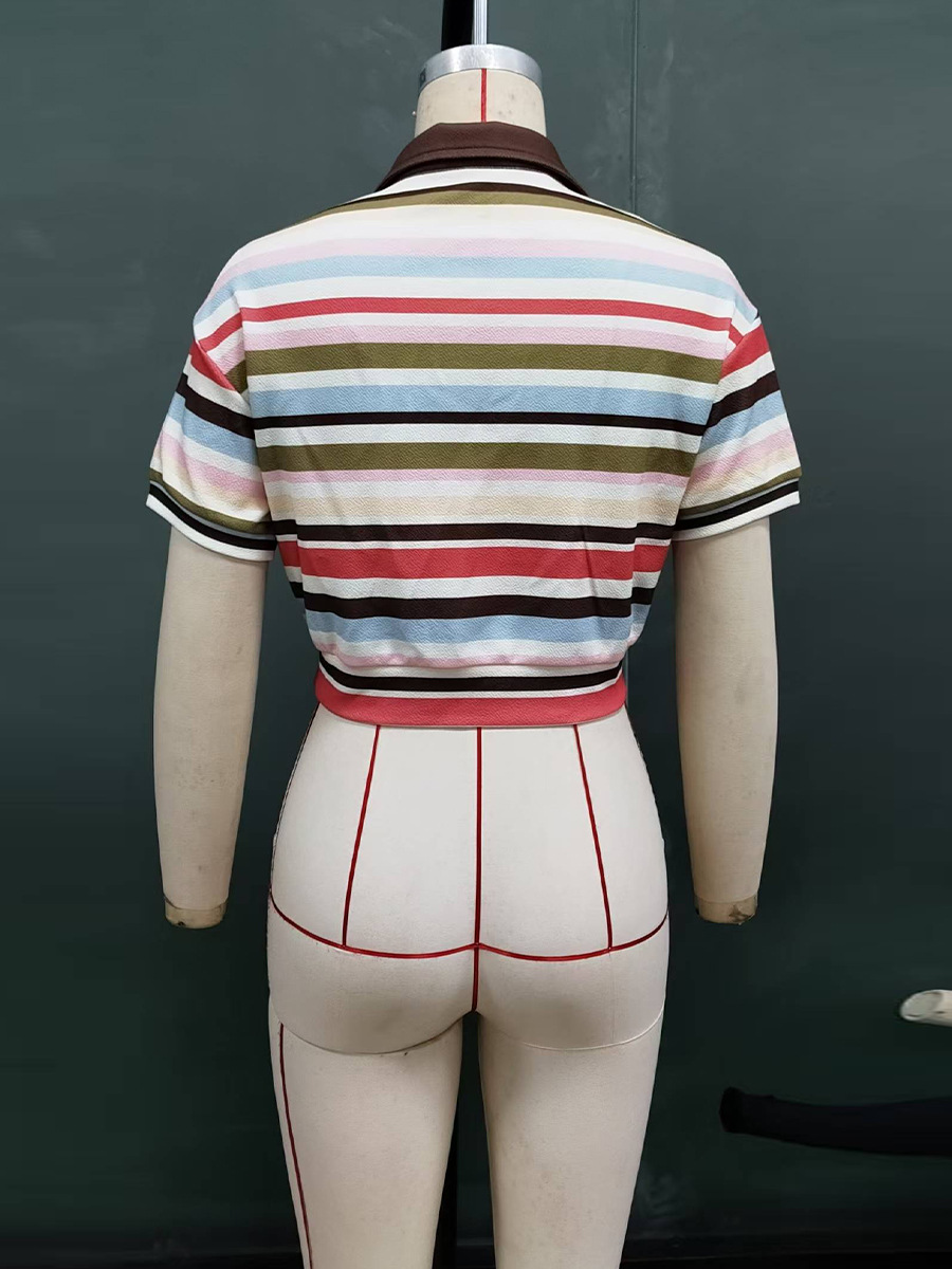 Women's Elegant Striped Short-sleeve Top