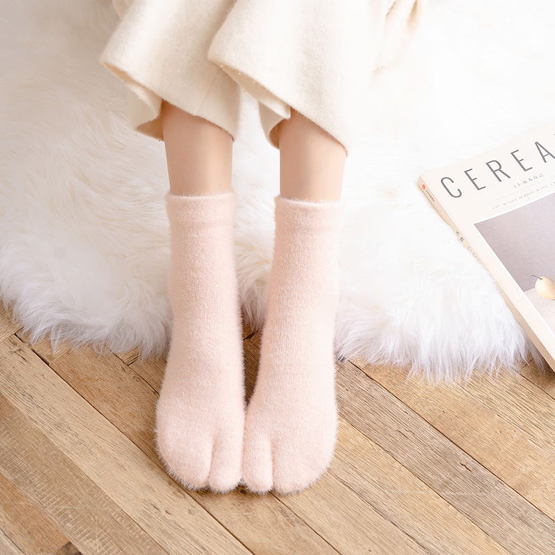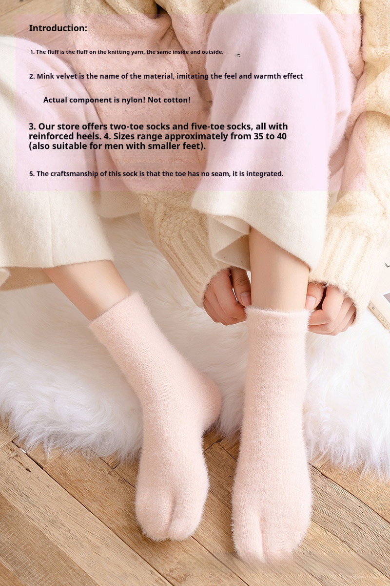 Women's Fleece-lined Thermal Winter Toe Socks Mid-calf Thick Warm
