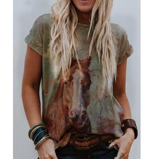 Women's Loose And Casual Fashion Fresh Print T-shirt