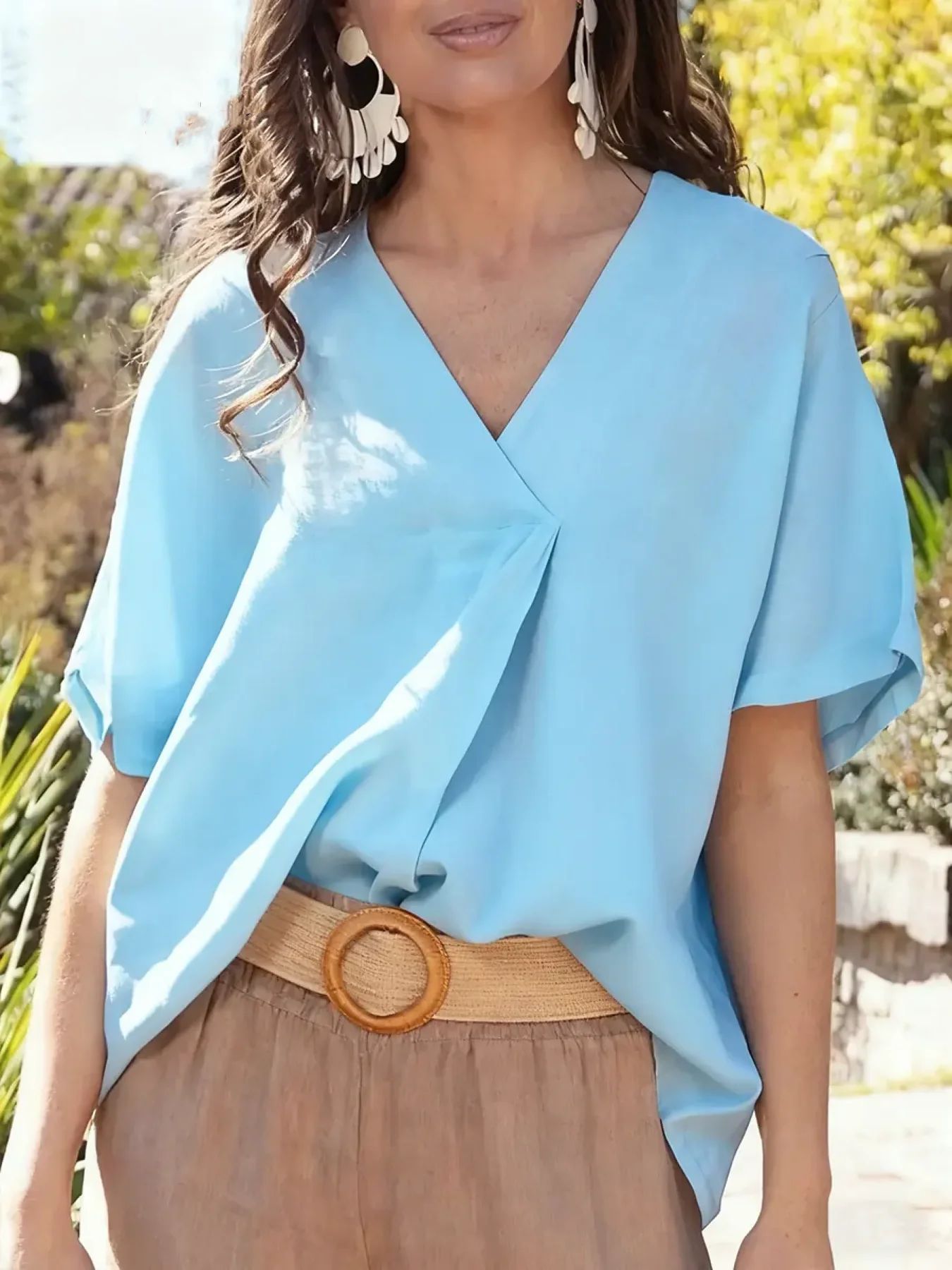 Women's New Arrival Short Sleeve V-Neck Casual Loose Top
