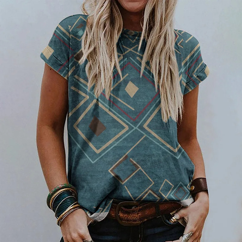 Women's Retro Floral-print Short-sleeve Top
