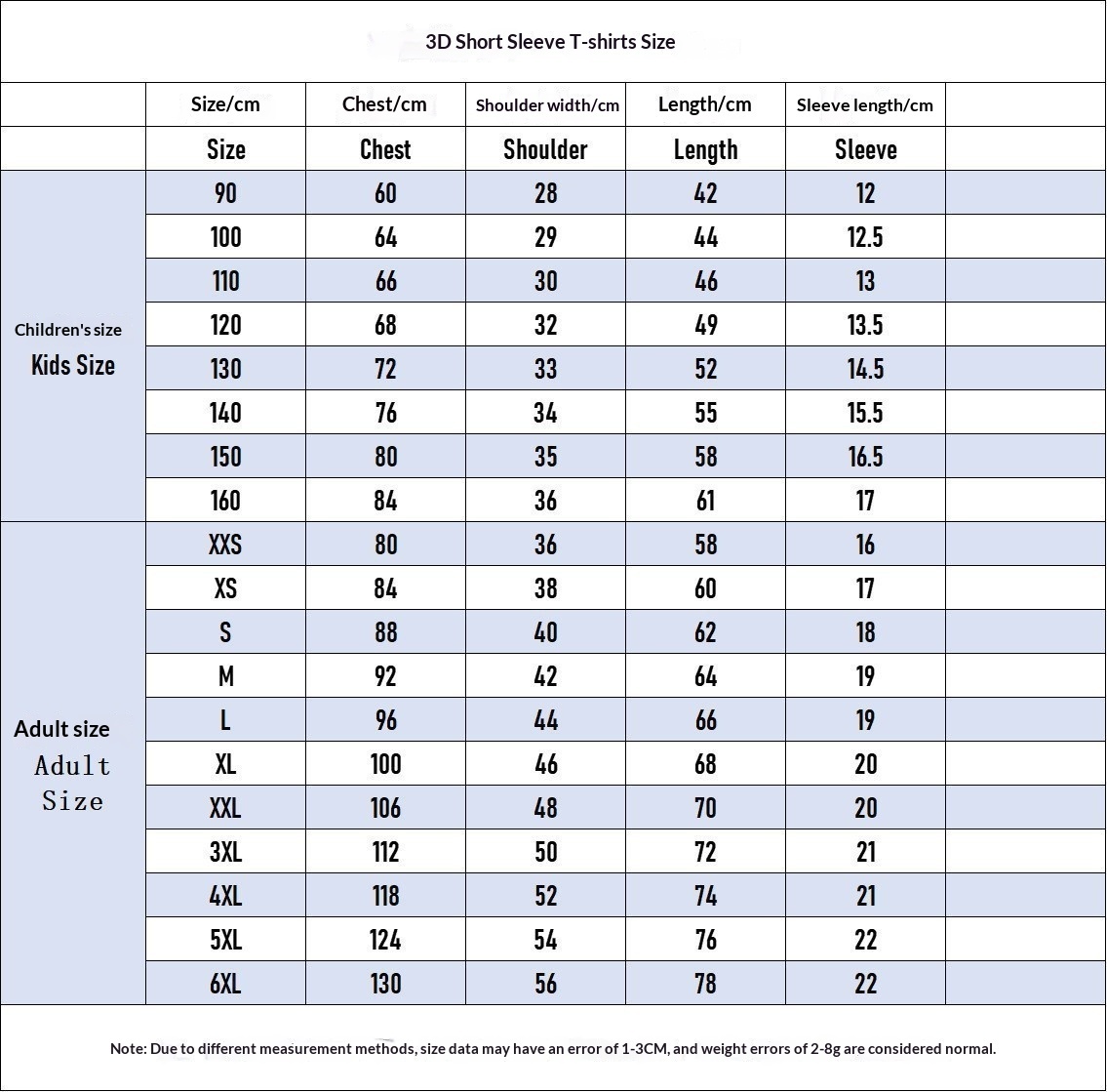Sizes: S, M, L, XL, XXL, 3XL, 4XL, 5XL, 6XL