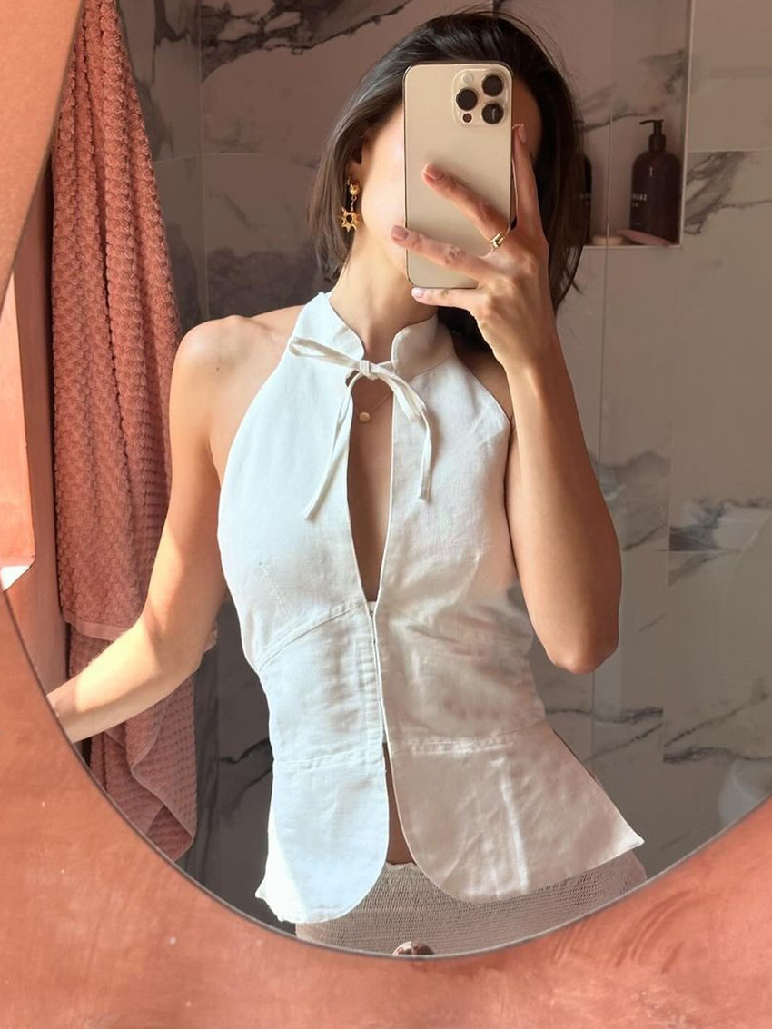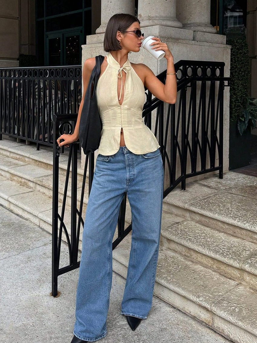 Women's Retro Lace-up Halter Neck Off-Shoulder Slim-fit Tank Top