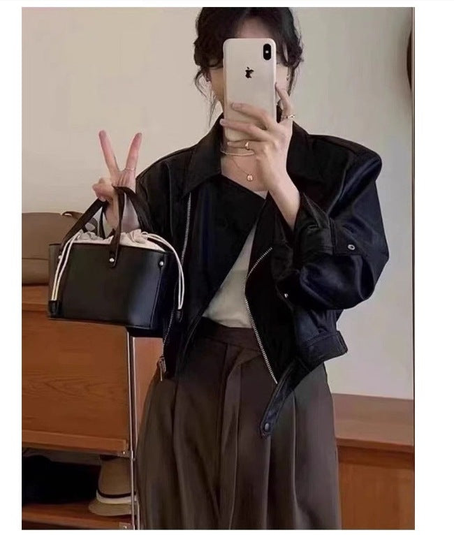 Women's Retro Long-sleeved Leather Coat Jacket
