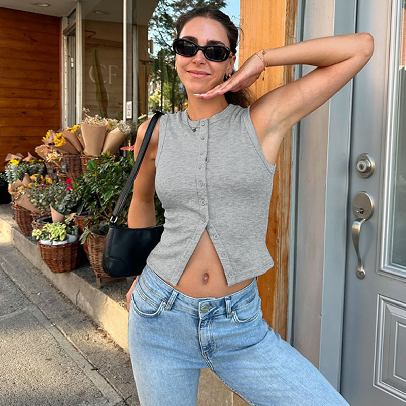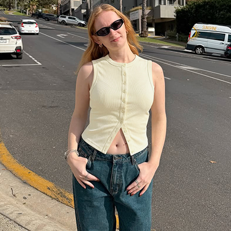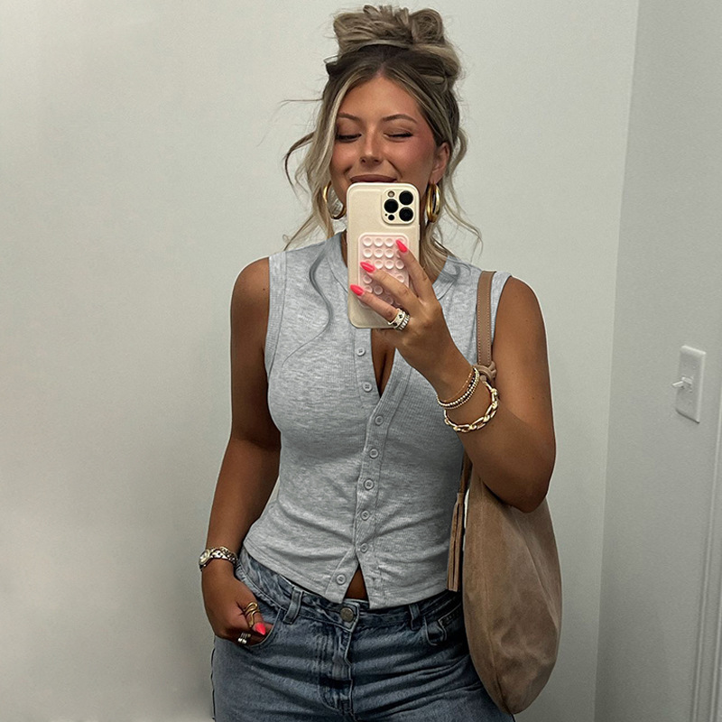 Women's Versatile Knitted Vest Top With Buttons