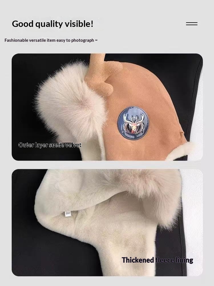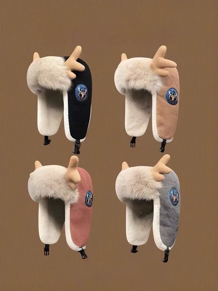 Women's Winter Plush Thickened Warm Deer Antler Hat