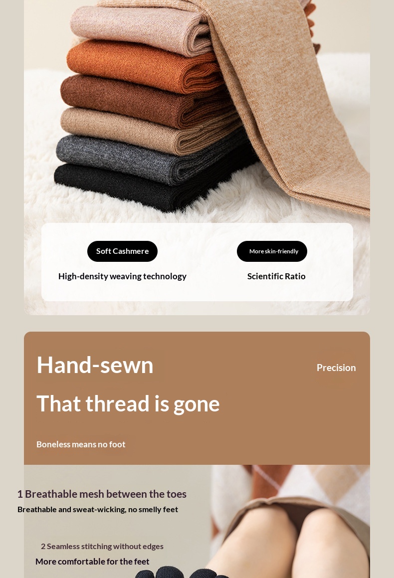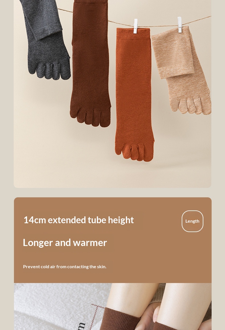 Wool Five-toe Women Mid-calf Five-toe Socks Winter Warm Long Winter Ladies Anti-slip Thickened Stockings